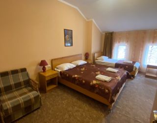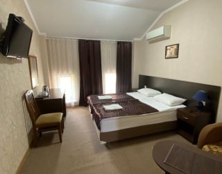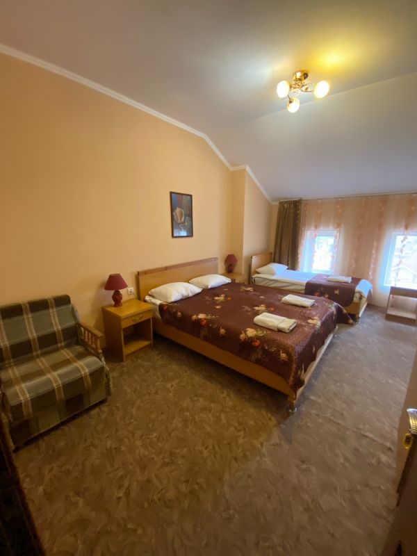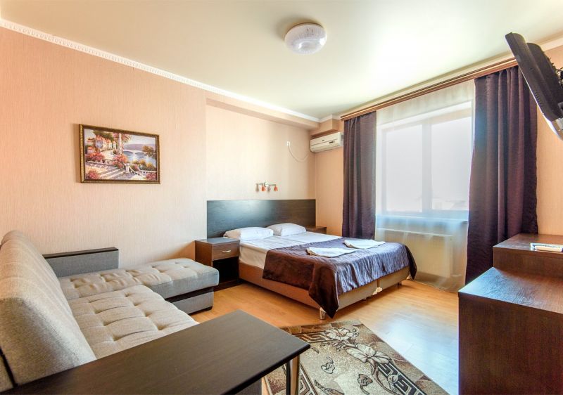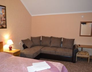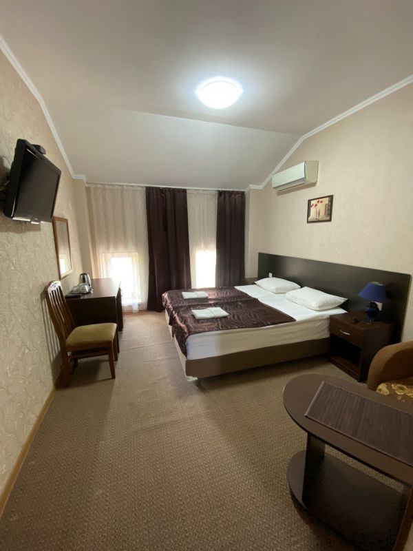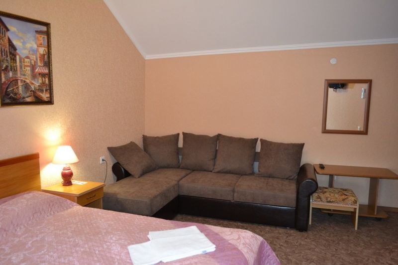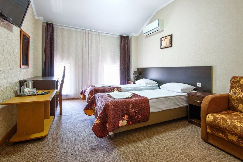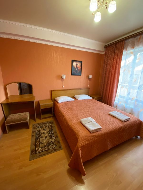 Четырехэтажное здание гостевого дома разместилось на углу улиц Горького и Малинкина переулка. К услугам отдыхающих гостей комфортабельные номера с балконами и без. В каждом номере предусмотрен санузел, установлена сплит-система, есть телевизор, холодильник, доступен безлимитный интернет.